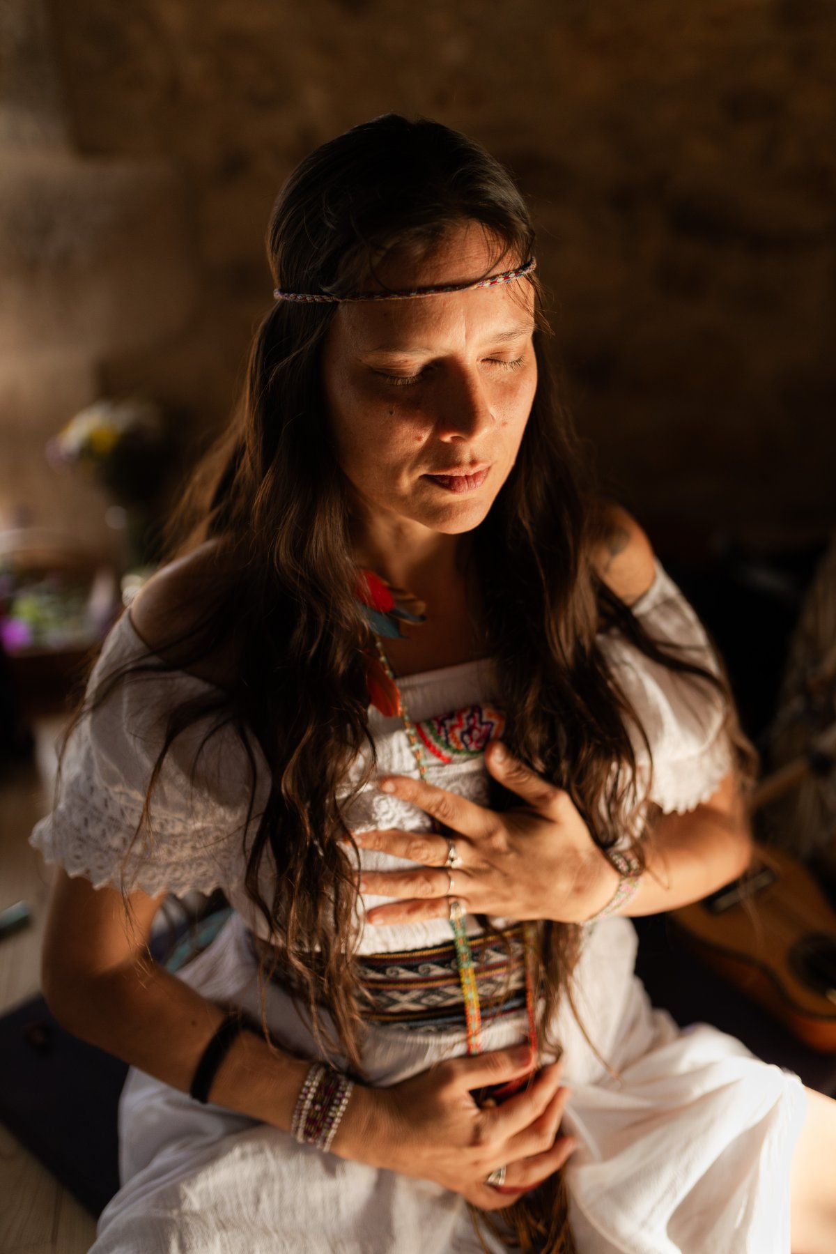 Chaska Combeaux Palma, dans son parcours de vie, chemine avec le monde végétal dans des reconnexions aux médecines ancestrales et accompagne les Êtres avec l’approche énergétique et psychocorporelle des constellations familiales et systémiques. Elle facilitera la constellation de l’Utérus et la cérémonie du Cacao.